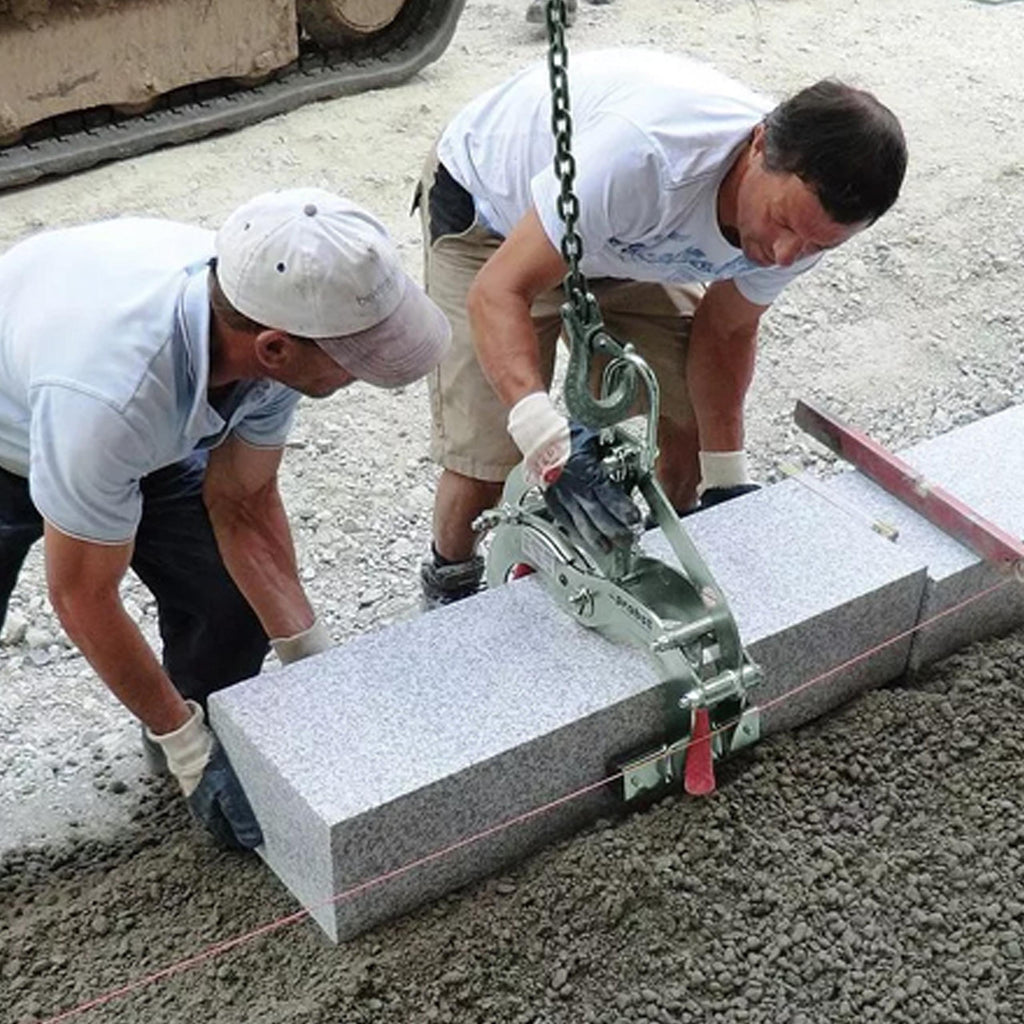 EXG-MAXI to idealny chwytak do kamieni rozgraniczających, jednak przyda się przy przenoszeniu innych elementów równoległych, płaskich i nie stożkowych, takich jak: