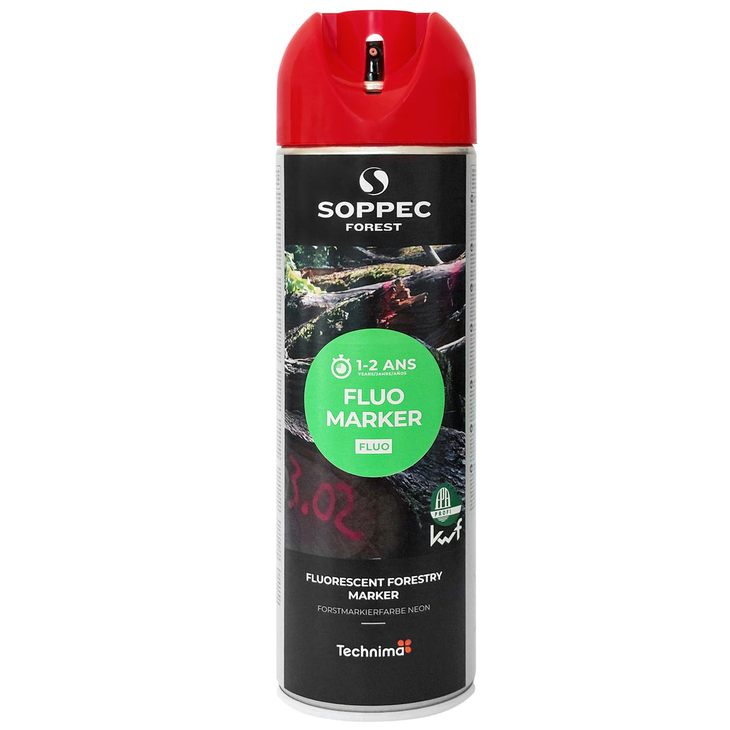 Spray znakujący do prac leśnych Fluo Marker Soppec - zapewnia bardzo dużą wydajność oraz krycie bez powstawania zacieków. Wykonane oznaczenia na drzewach oraz drewnie są bardzo dobrze widoczne, nawet z dużej odległości.