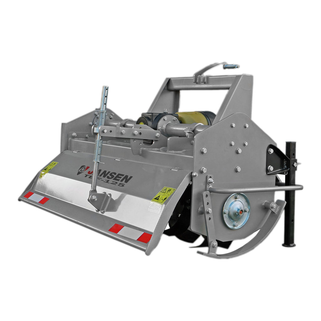 Nowoczesna glebogryzarka Jansen TBF‑125 to wysoce wydajne narzędzie zawieszane na trójpunktowym układzie (Kat. I / II), zaprojektowane dla małych i średnich ciągników (min. 20 KM). Z szerokością roboczą ok. 125 cm i regulowaną głębokością do 16 cm, idealnie sprawdza się w rolnictwie, sadu, winnicach, ogrodnictwie i zagospodarowaniu terenu. Wyposażona w wzmocnione przekładnie kątowe oraz napęd wału wirnika w kąpieli olejowej, gwarantuje trwałość i niezawodność pracy.