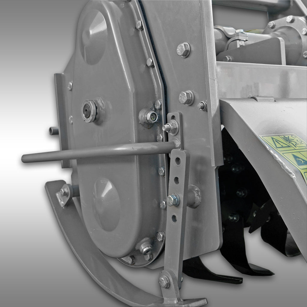 usuwa nierówności dzięki tylnej klapie z amortyzatorami poziomującymi, co sprzyja równemu i drobnemu rozdrabnianiu gleby.