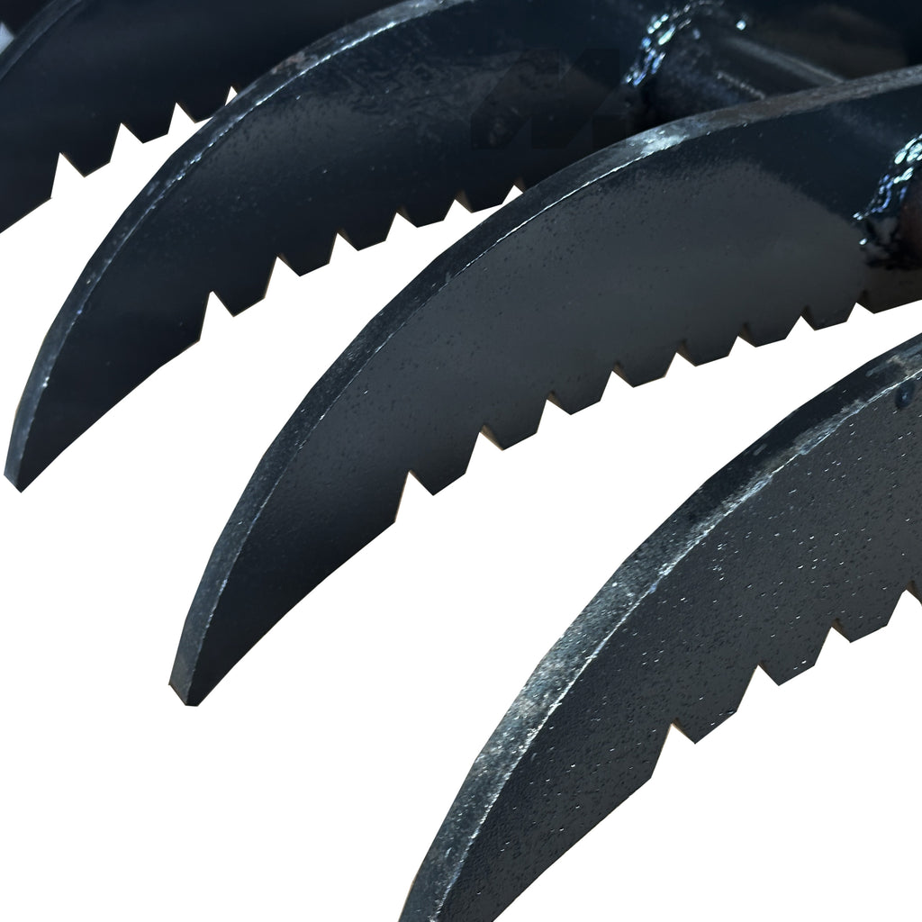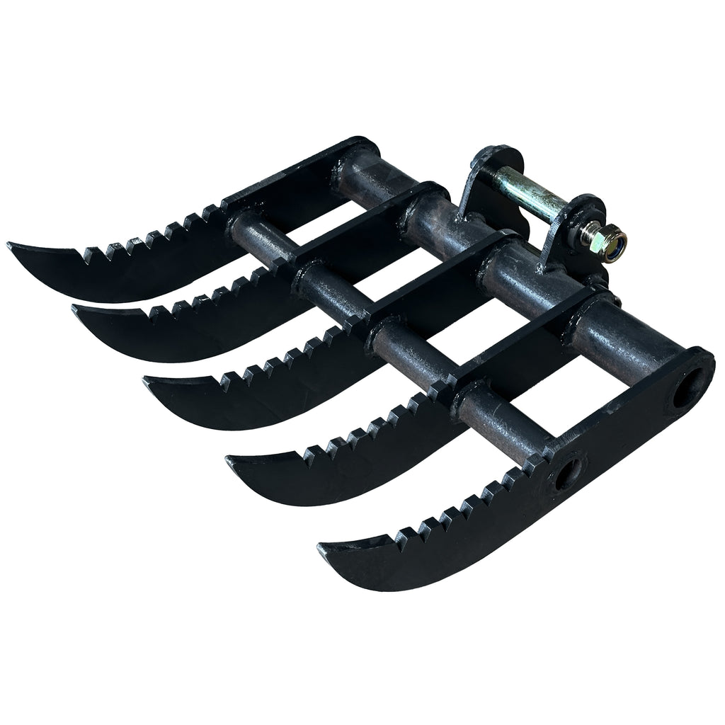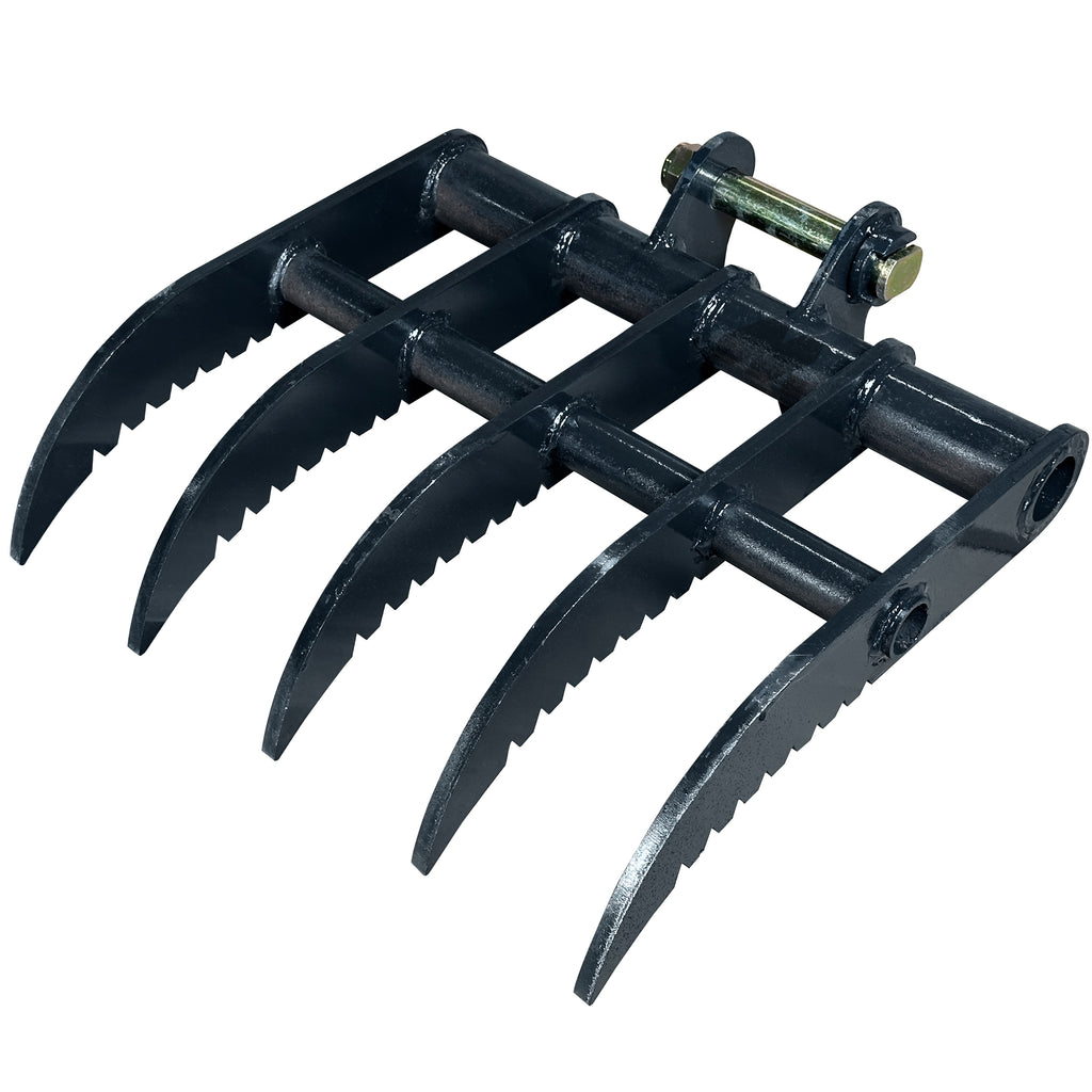 Grabie do minikoparek MEYER - niezawodne przy zgarnianiu gałęzi oraz traw. Stosowane do usuwania demontowanej kostki brukowej oraz luzowania gruntu.