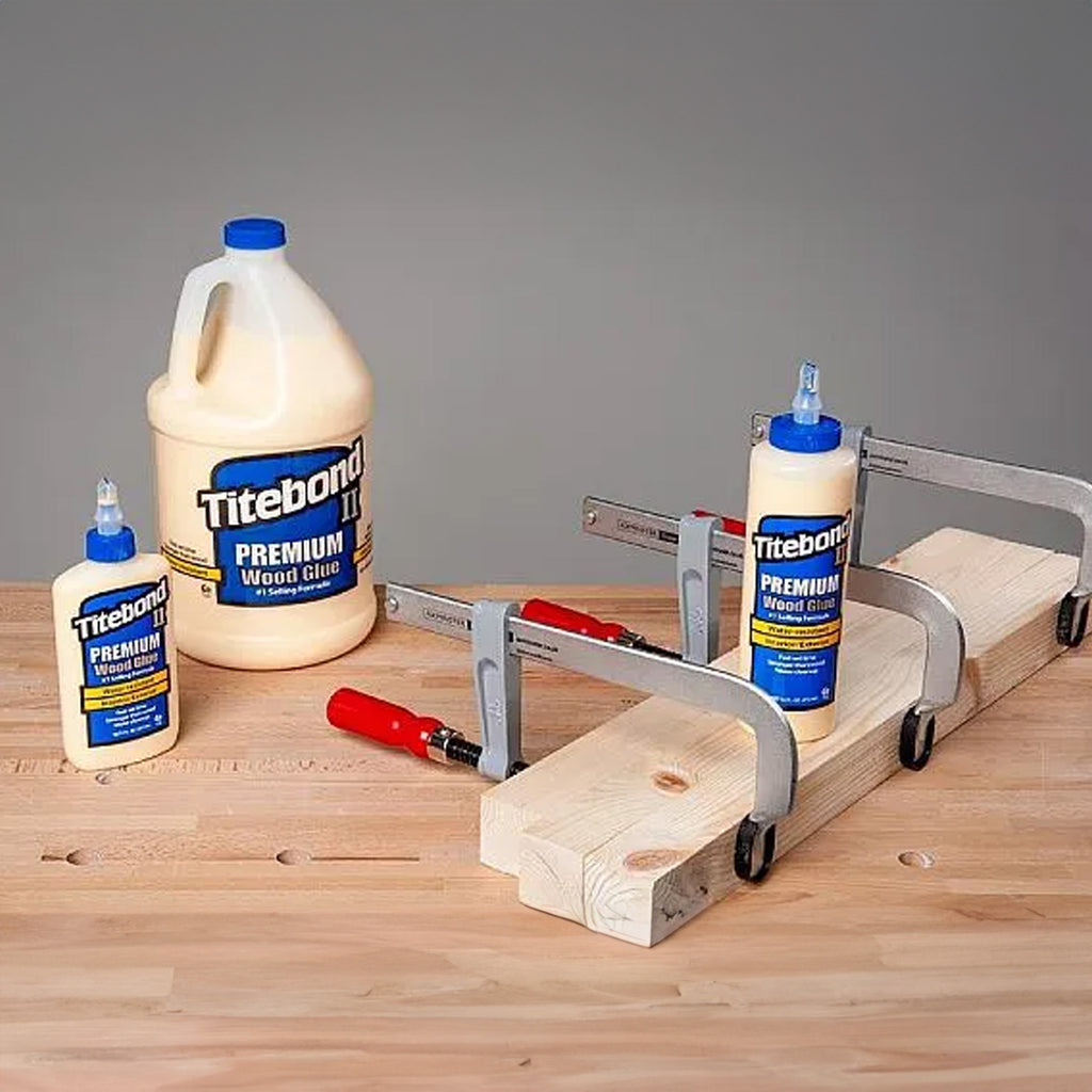 Wodoodporny klej do drewna Titebond II Premium do klejenia konstrukcji drewnianych, nawet tych podatnych na działanie czynników atmosferycznych, np. drewnianych mebli ogrodowych. Posiada uniwersalne zastosowanie - sklei zarówno drewno, płytę pilśniową, jak i laminaty czy płyty wiórowe.