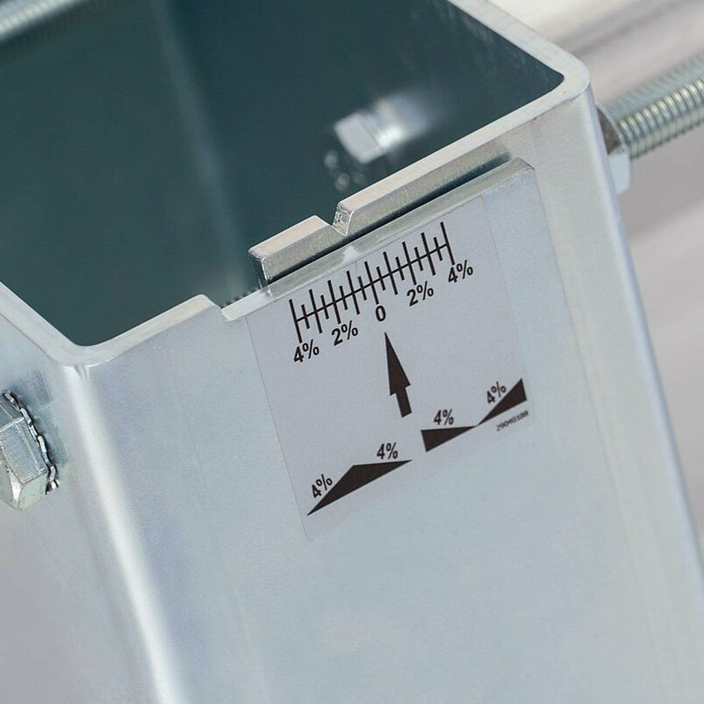 Łączenie daszkowe Probst TAS-UNI-DP to adapter z regulowaną częścią pośrednią do łat profilujących. Kompatybilny do modeli Probst TAS-UNI 450 lub TAS-UNI 600 do spadków daszkowych i rynnowych (+/- 4%). Można go regulować dokładnie i bezpośrednio powyżej skali. Jego szerokość wynosi 2100 mm i ciężar własny- 25 kg.