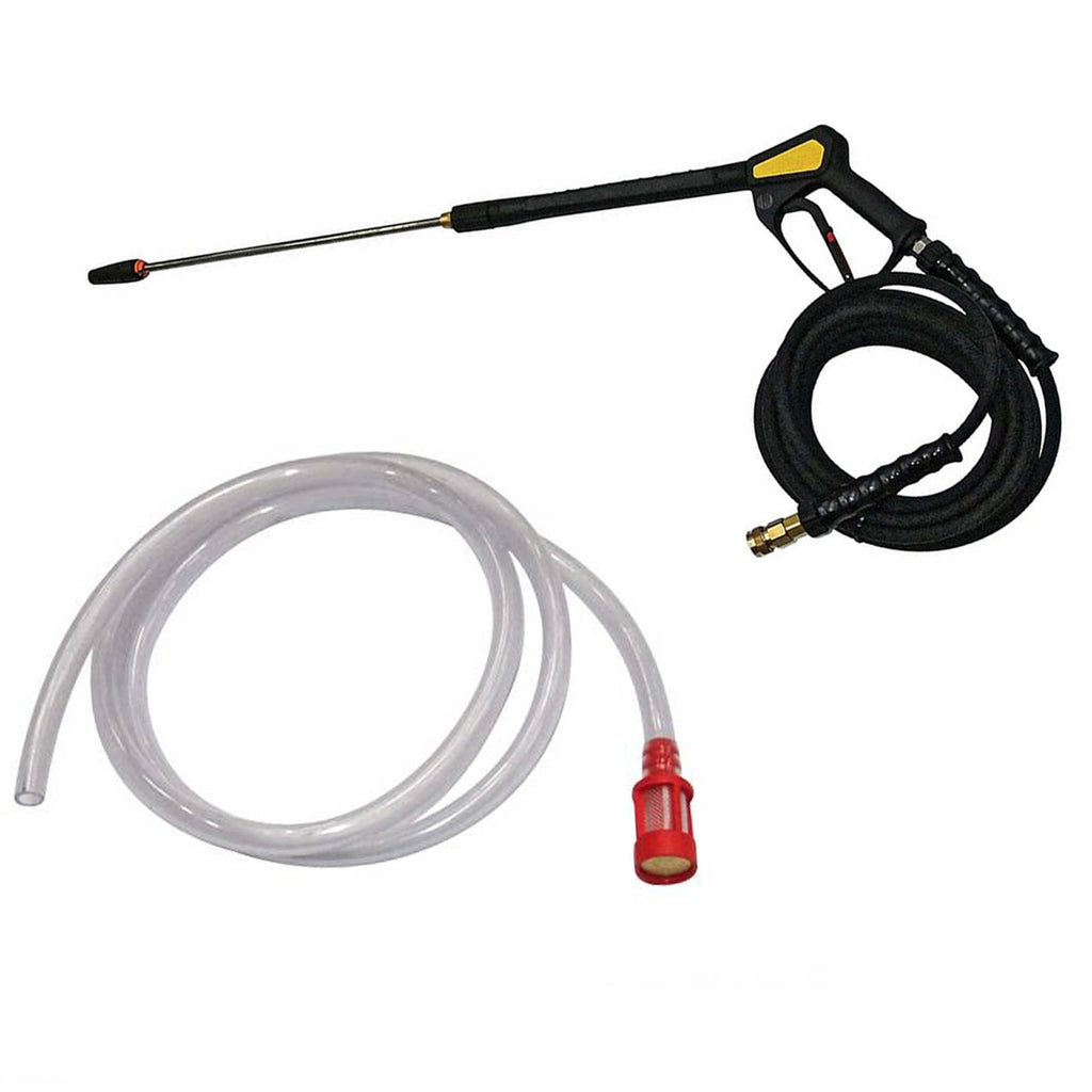 Lanca ciśnieniowa SL-8 + zestaw chemiczny przeznaczone do myjki PROBST EC-60. Zestaw chemiczny CK zapewnia pobieranie i dozowanie dodatków z pojemników. Dysze są dostosowane do wysokiego ciśnienia.