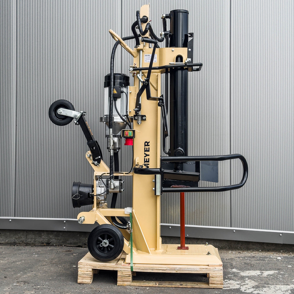 Hydrauliczna łuparka przemysłowa MEYER M30TN do intensywnego przerobu opału, drewna konstrukcyjnego i odpadu tartacznego. Podwójne zasilanie (silnik elektryczny 400 V 5,5 kW + WOM) pozwala pracować tam, gdzie akurat masz energię – w zakładzie lub w lesie. Zakres materiału: Ø 8–40 cm, długość 56–110 cm. Niska emisja hałasu (≤ 80 dB(A)) i wibracji (2,5 m/s²) poprawia komfort operatora i bezpieczeństwo stanowiska. Stopień ochrony IP54 i zbiornik 30 l sprzyjają długim cyklom roboczym bez przegrzewania. To wszystko przekłada się na zwrot z inwestycji: szybsza partia, mniej strat, przewidywalny koszt roboczogodziny.