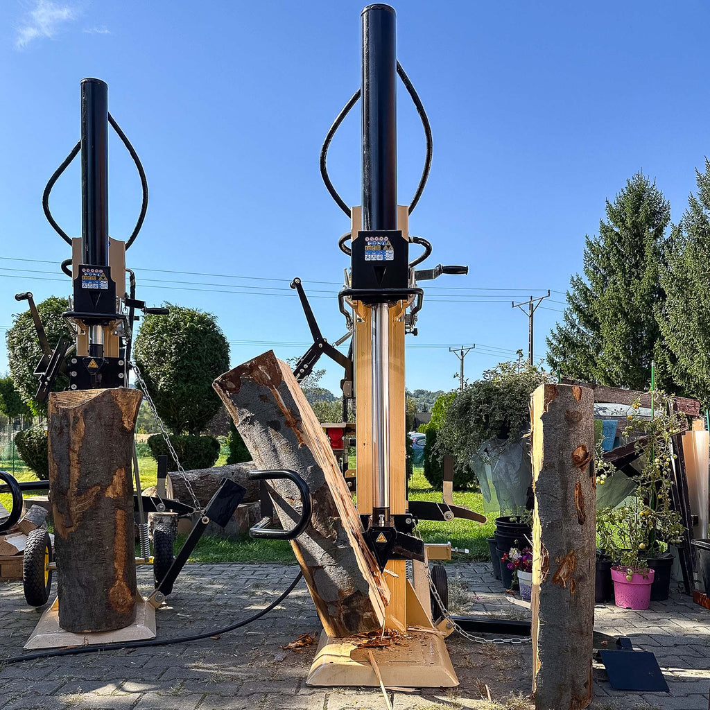 Łuparka do drewna M30TN skraca czas przerobu grubych kłód (średnica do 40 cm, długość 56–110 cm) dzięki realnej sile 30 t i szybkim cyklom (praca 12,5 cm/s, powrót 6,7 cm/s). To profesjonalna łuparka do drewna 30 ton z podwójnym napędem 400 V + WOM (wału odbioru mocy) daje pełną elastyczność: w hali korzystasz z prądu, w terenie podpinasz się do ciągnika. Solidna masa 373 kg i ciśnienie 26,1 MPa zapewniają stabilność, powtarzalność i niskie koszty przestojów.