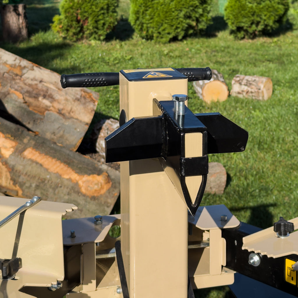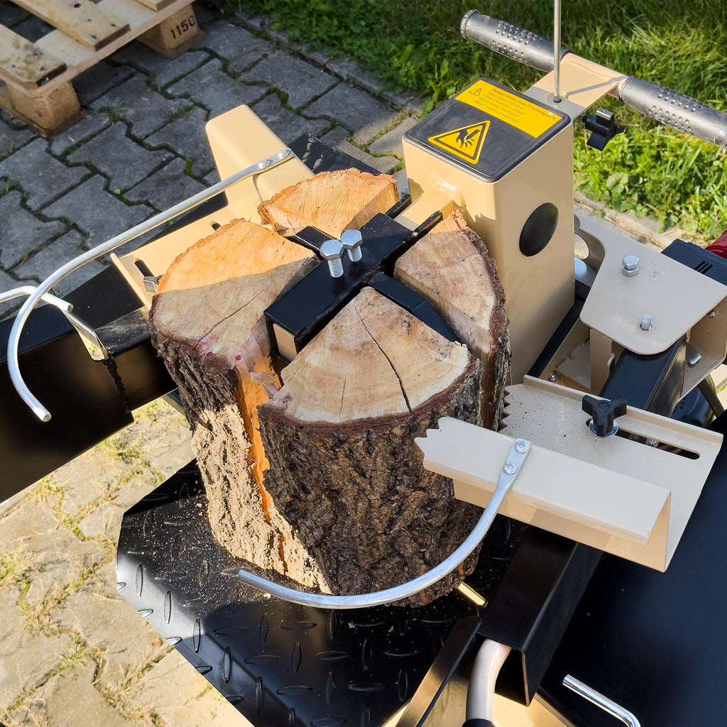 Opcjonalny klin krzyżowy umożliwia łupanie kłód na cztery części bez konieczności ich przekładania – to dodatkowa oszczędność czasu i pracy operatora.