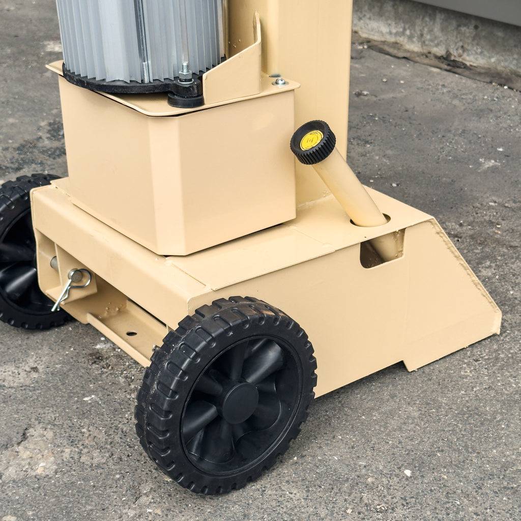 Dzięki regulowanemu stołowi roboczemu i oburęcznemu sterowaniu, operator zyskuje bezpieczeństwo i wygodę pracy. Niski poziom hałasu (75–78 dB) oraz drgań (<2,5 m/s²) spełnia wymogi BHP, a kompaktowe wymiary i masa 116 kg ułatwiają transport i ustawienie maszyny w magazynie lub na placu.