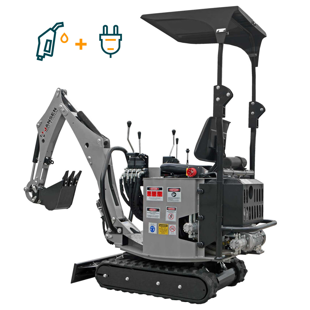 Minikoparka Jansen MB-1500K wyposażona w silnik benzynowy Briggs & Stratton o mocy 13,5 KM oraz silnik elektryczny 400V 2,2 kW. Oznacza to, że oprócz standardowych zastosowań nadaje się również do pracy we wewnątrz budynków i wielu innych trudnych sytuacjach, gdzie maszyna ze silnikiem spalinowym się nie sprawdzi. Niewielka szerokość - 825 , sprawia, że minikoparka Jansen może dostać się w trudno dostępne miejsca, a jednocześnie jest mocna i wydajna. Wyróżnia się wysoką mocą kopania - głębokość kopania do maks. 145 cm, a wysokość wyrzutu do 168 cm, co czyni ją także idealnym towarzyszem do prac ogrodowych.