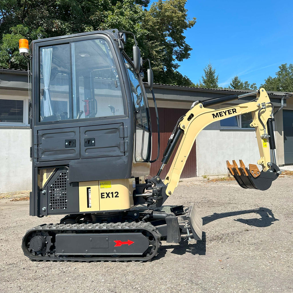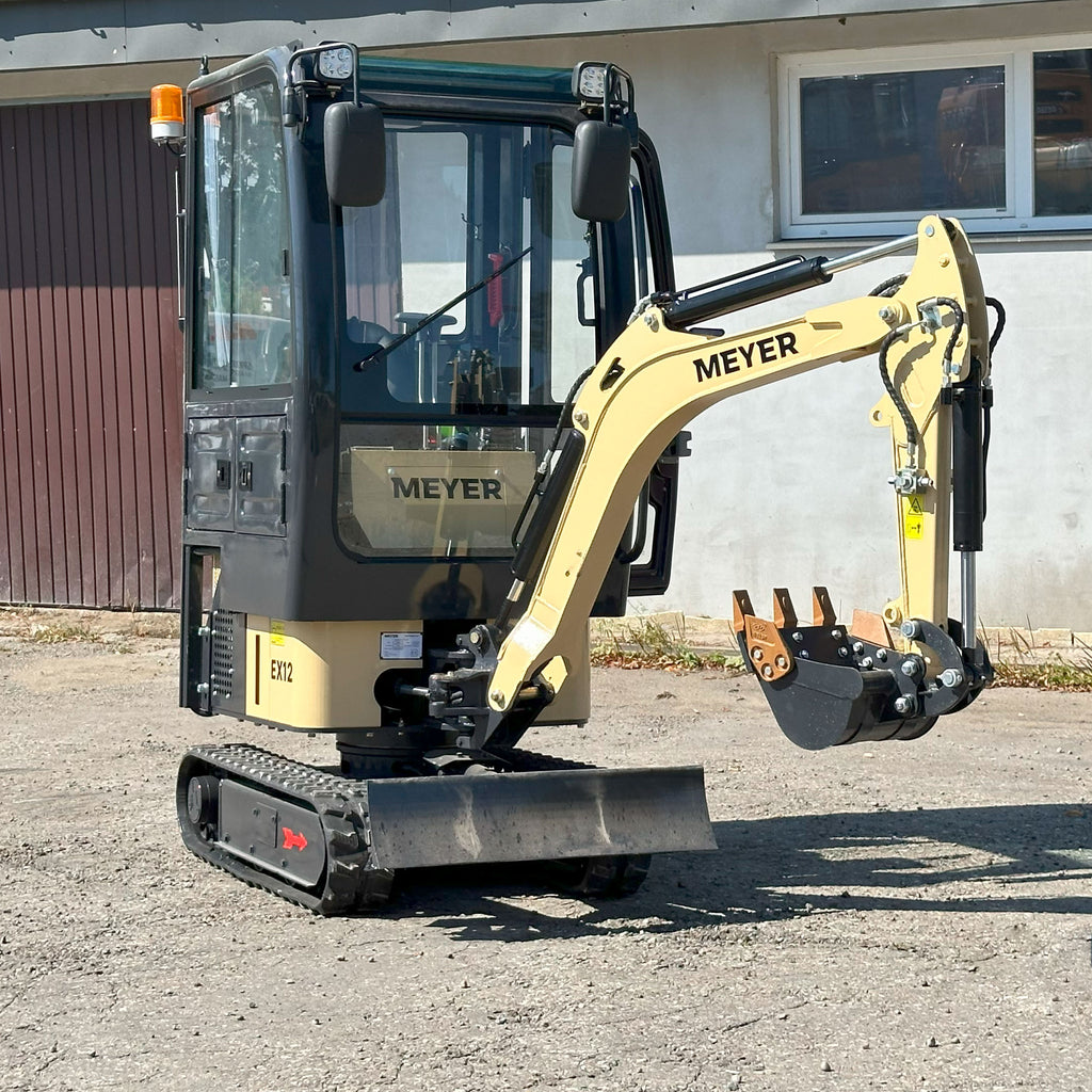 Minikoparka MEYER EX12 w nowej wersji z kabiną, skrętnym ramieniem oraz joystickiem to nowa jakość pracy! Sprawdzi się w przypadku mniejszych projektów ogrodowych, budowlanych, czy przyłączeniowych.