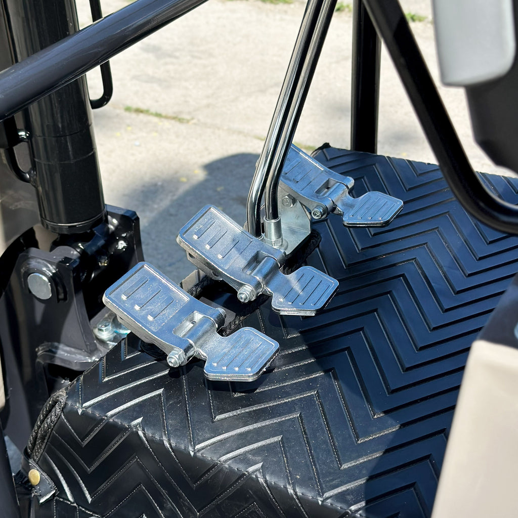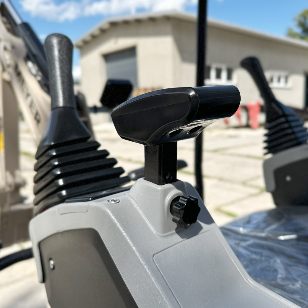 Dzięki niewielkiemu promieniowi skrętu (1142 mm) i szerokości podwozia 940 mm maszyna idealnie nadaje się do pracy w ograniczonej przestrzeni miejskiej lub na prywatnych posesjach. Gąsienice o szerokości 180 mm zapewniają stabilność nawet na miękkim podłożu, a ergonomiczna kabina operatora zwiększa komfort i bezpieczeństwo pracy.