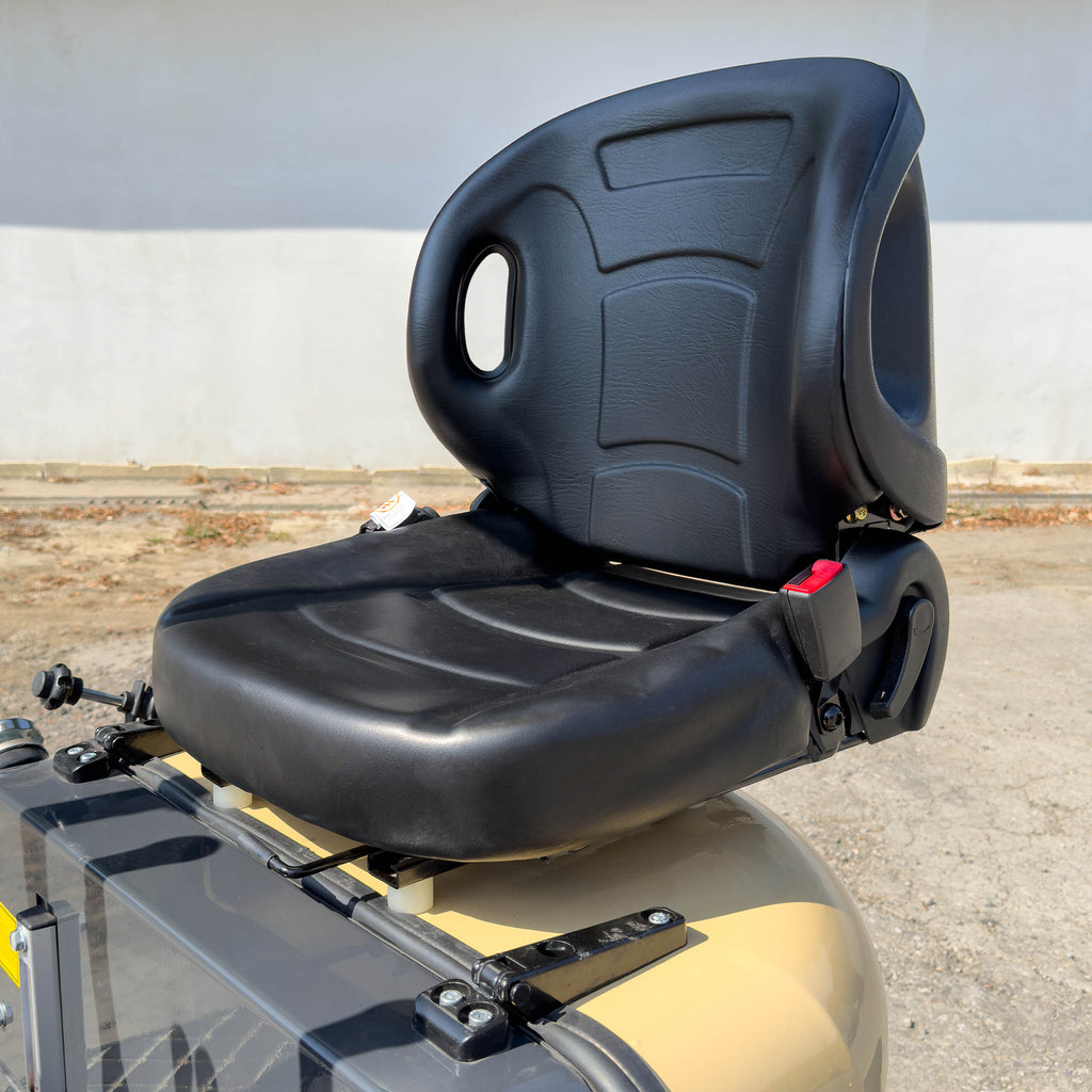 Operator ma zapewniony komfort i bezpieczeństwo – minikoparka została wyposażona w regulowany fotel dostosowany do wzrostu i preferencji użytkownika oraz pasy bezpieczeństwa, które zwiększają ochronę podczas pracy w trudnych warunkach terenowych.