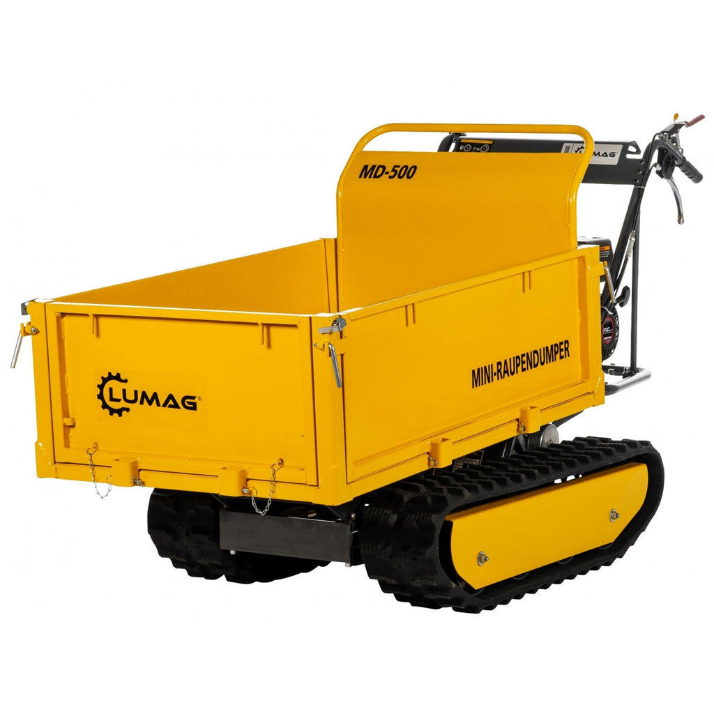 Miniwywrotka Lumag MD500 to małe, poręczne wozidło, które łagodzi ból pleców podczas różnych zadań związanych z przeładunkiem materiałów. Bez względu na to, czy chodzi o przenoszenie kostki brukowej w ogrodzie, piasku czy przenoszenie drewna opałowego - pomoże w tym wywrotka Lumag. Wyładunek odbywa się poprzez przechylenie skrzyni wspomaganej siłownikiem pneumatycznym. Ładowność miniwywrotki MD500 to 500 kg. Maszyna napędzana jest niezawodnym silnikiem Loncin.