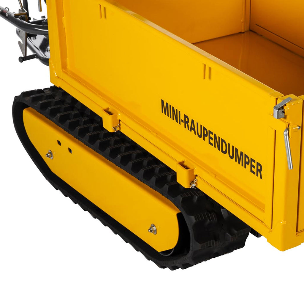 Przy szerokości 770 mm wywrotka może być swobodnie używana w wąskich przejściach i w budynkach. Wozidło świetnie radzi sobie na trudnym terenie, wzniesieniach, czy na stromych zboczach. Panele boczne można rozmontować.