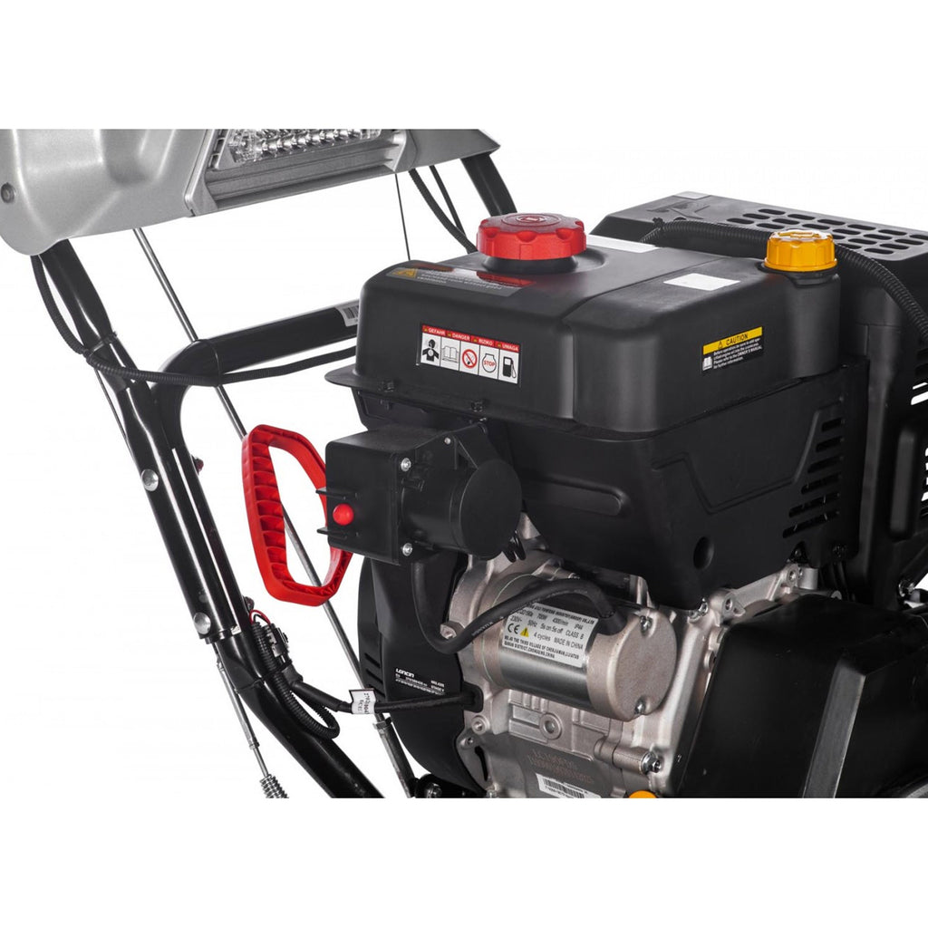 Potężna odśnieżarka Lumag SFK 110-PRO to sprzęt niemieckiego pochodzenia, który świetnie poradzi sobie przy odśnieżaniu dróg, parkingów, ścieżek, placu wokół domu czy gospodarstw. Wytrzymałe podzespoły z których wykonano maszynę zapewniają długą żywotność i sprawność maszyny. Górnozaworowy, benzynowy silnik OHV o mocy 15 KM jest przystosowany do niskich temperatur i gwarantuje odpowiednią moc, przy niskich kosztach eksploatacyjnych. Posiada czujnik oleju. Start maszyny możliwy jest za pomocą elektrycznego rozrusznika, bądź ręcznie.