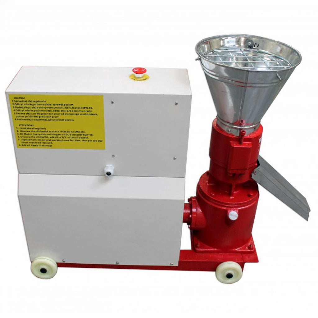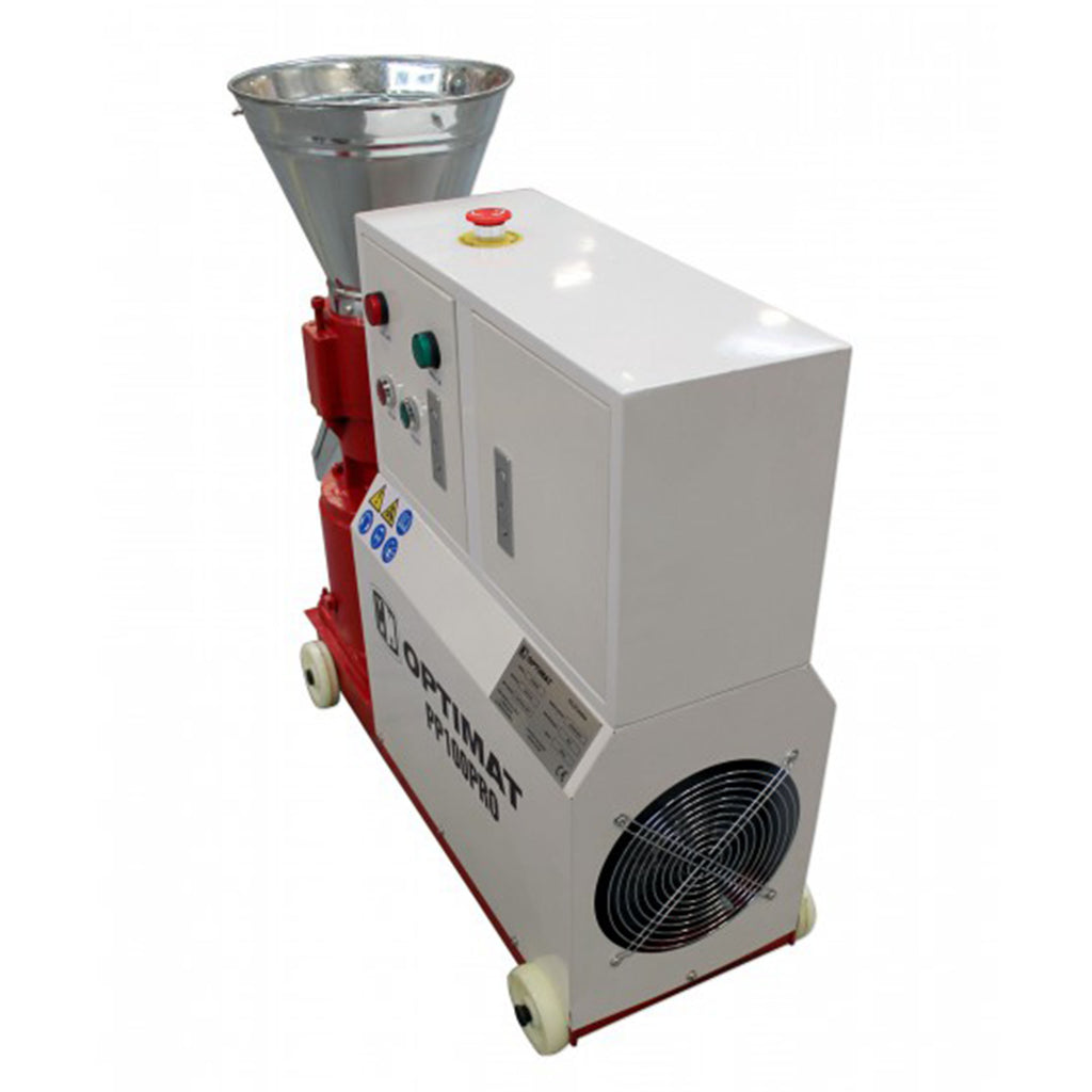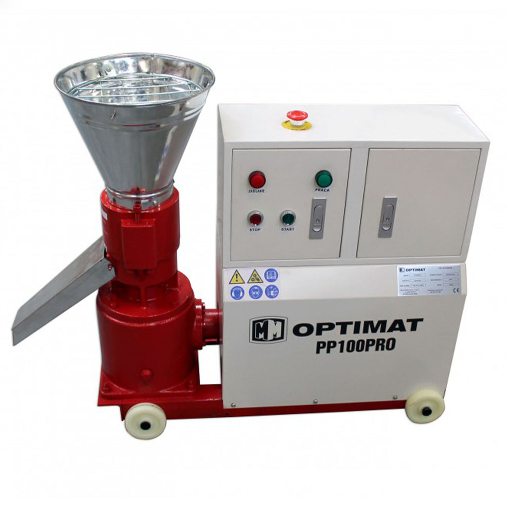 Peleciarka, zwana też granulatorem polskiej marki Optimat. Model PP100PRO służy do produkcji peletu do ogrzewania i nawożenia oraz paszy dla zwierząt.