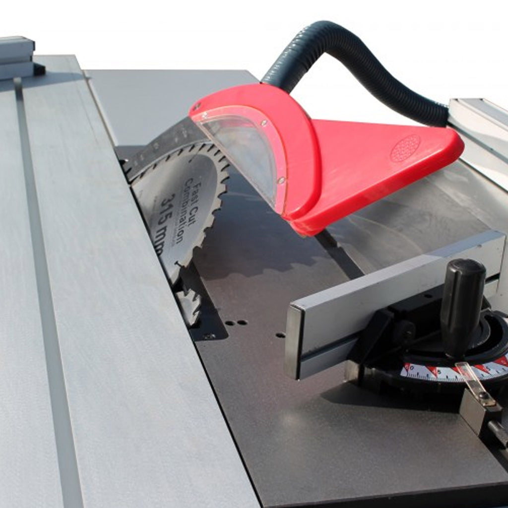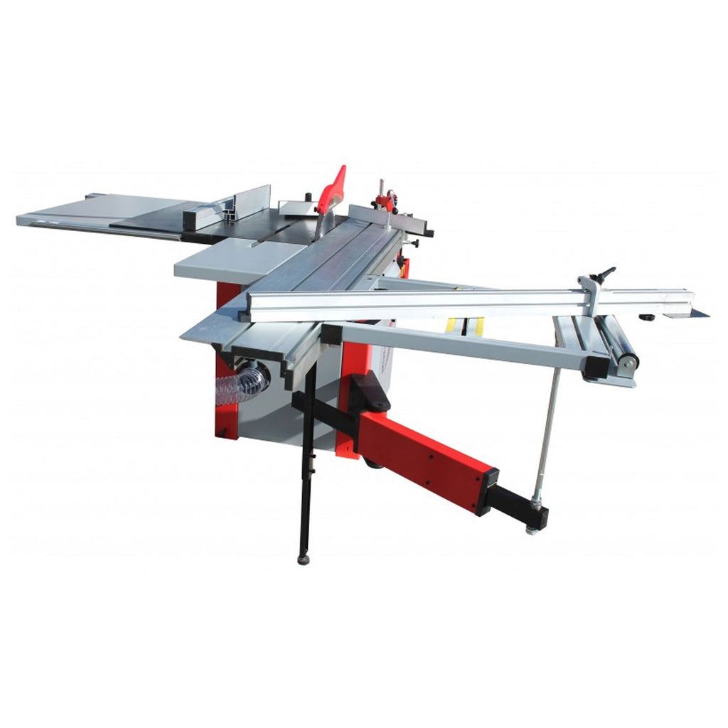 Urządzenie wyposażone zostało w wygodny stół formatowy o długości 2000 mm z rolką pomocniczą przy wysięgniku oraz wysuwany przymiar ukośny z rozkładanym ogranicznikiem. Dzięki temu daje możliwość cięcia materiału o maksymalnej długości 1900 mm lub 1220 mm przy użyciu prowadnicy wzdłużnej. Piła wyróżnia się mocnym silnikiem 3,0 kW, który idealnie sprawdzi się nawet przy trudnej obróbce drewna. Wygodne pokrętła pozwalają na precyzyjną zmianę wysokości cięcia oraz pochylenia tarczy do 45 stopni. Dodatkowo maszyna posiada regulowany podcinak, który eliminuje zjawisko strzępienia się krawędzi materiału gwarantując perfekcyjne wykończenie.