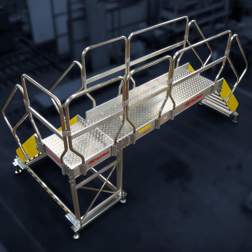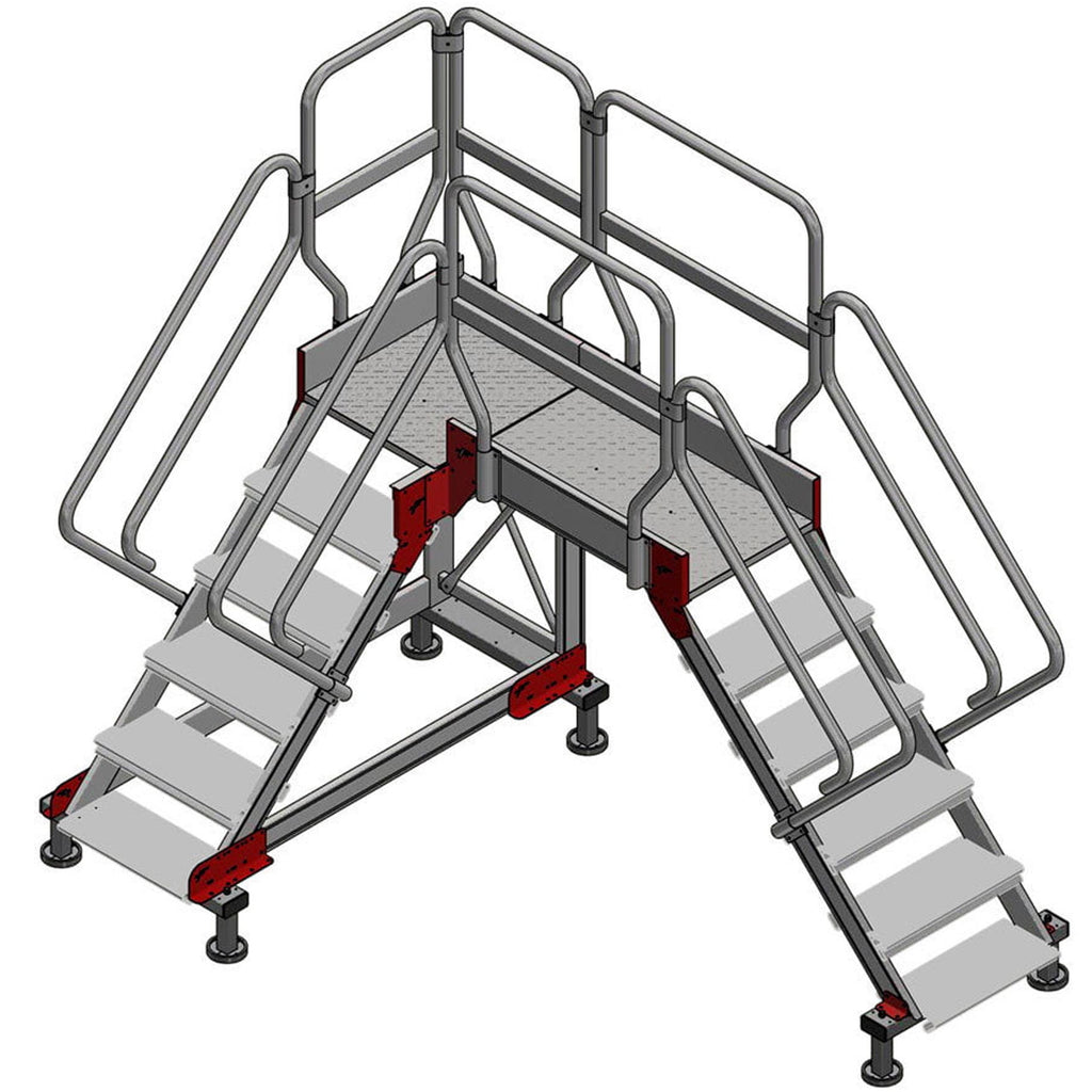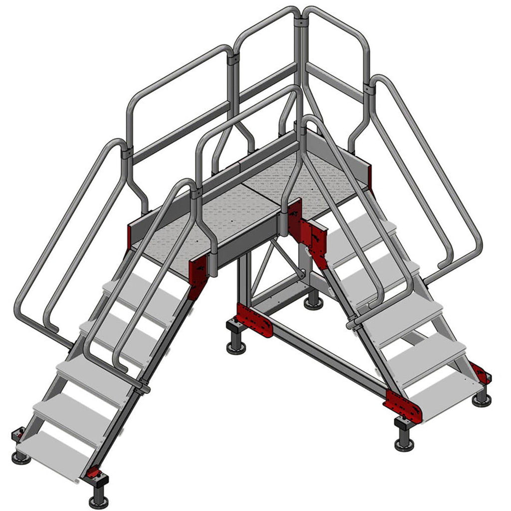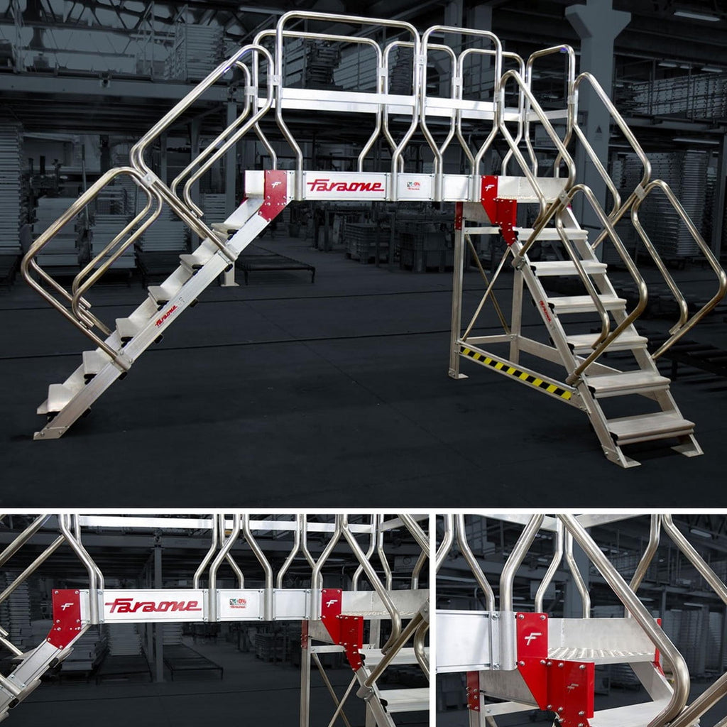Platforma przejściowa w literę L SCALA SYSTEM od Faraone to profesjonalna konstrukcja umożliwiająca bezpieczne przejście ponad przeszkodami. Pomost zaprojektowany został przez doświadczonych inżynierów firmy Faraone oraz zgodnie z normą EN 131-7. Dostępny jest w wersji aluminiowej, z opcją wykonania na zamówienie w całości ze stali nierdzewnej. Istnieje możliwość konfiguracji konstrukcji wedle potrzeb indywidualnych.