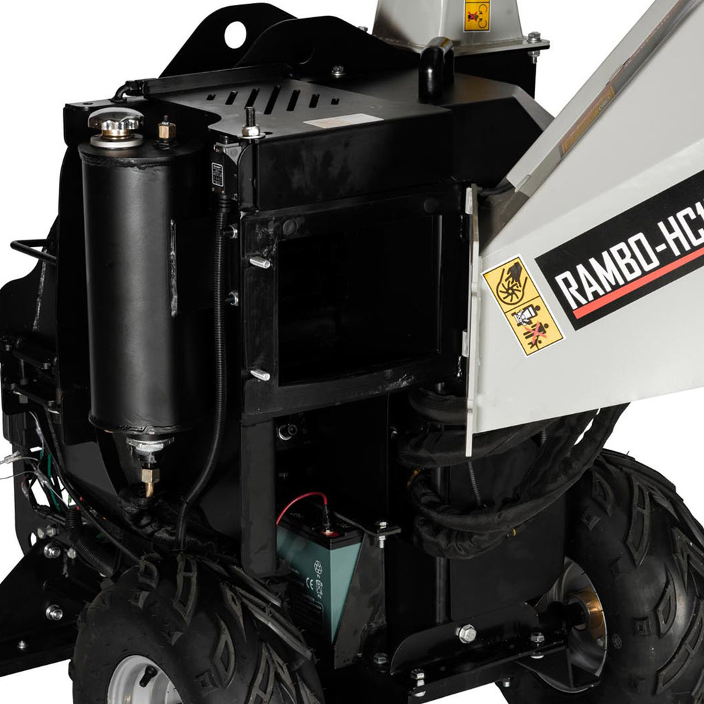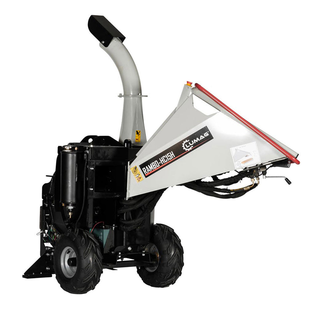 Rębak ogrodowy Lumag Rambo-HC15H rozdrabnia gałęzie i patyki o grubości do 120 mm. Napędzany jest 4-suwowym silnikiem benzynowym o mocy 15 KM. Rozdrabniacz wyposażony jest w hydrauliczny wałek podający, który równomiernie (pod względem prędkości) i stale podaje materiał do rozdrabniania. Gałęzie wciągane są automatycznie - nie trzeba ich popychać. Zwiększa to funkcjonalność oraz wydajność urządzenia - nawet zniekształcone gałęzie, czy te z cierniami i kolcami są bez trudności wciągane i siekane. Wałek posiada funkcję zatrzymania i wycofania materiału w przypadku zacięcia.