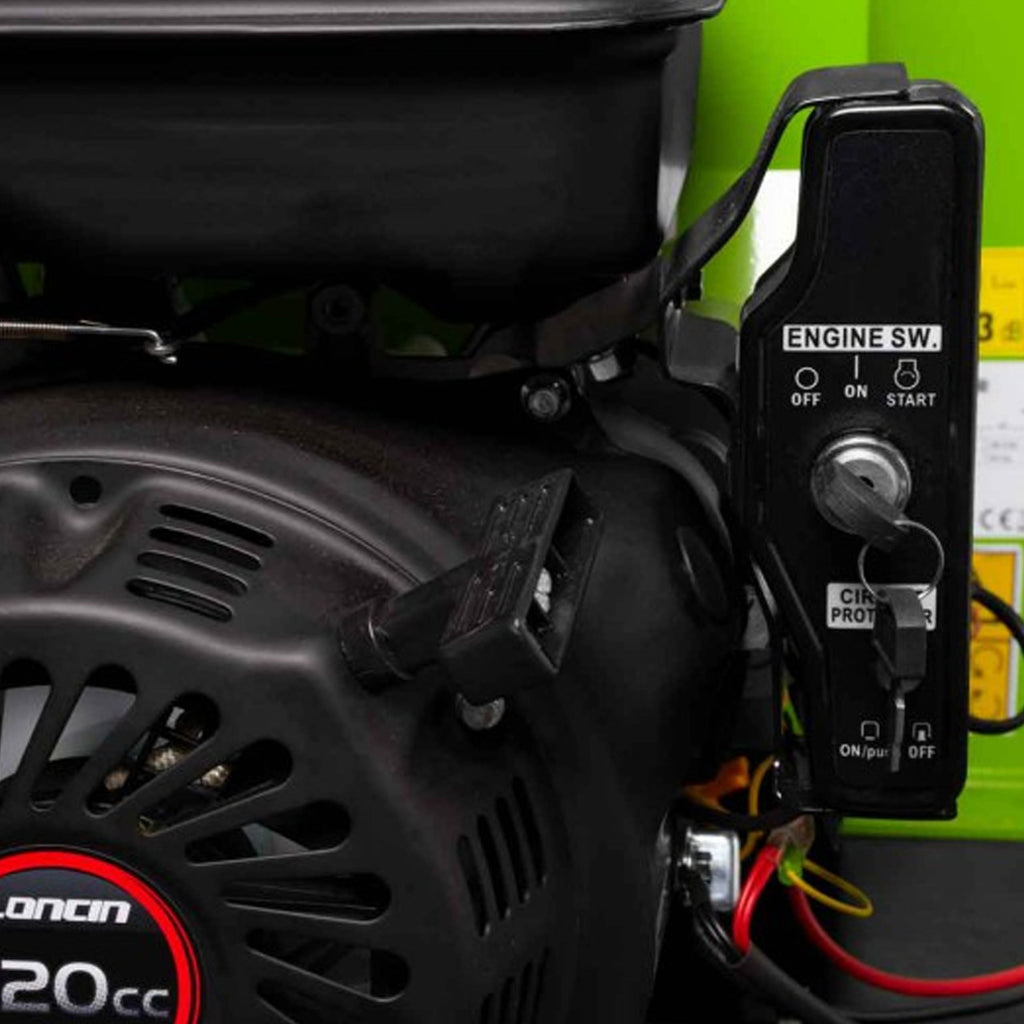 Rębak do gałęzi spalinowy Zipper posiada wydajny silnik o mocy 9 kW, co pozwala na łatwe rozdrabnianie gałęzi o średnicy do 12 cm. Prędkość obrotowa noży wynosi 2000 obr./min., co pozwala na szybkie przetwarzanie materiału. Tarcza tnąca z dwoma odwracalnymi nożami o wymiarach 170 x 50 x 7 mm zwiększa efektywność pracy i zapewnia doskonałe rezultaty końcowe. Obrotowy wyrzutnik zrębków kieruje rozdrobnione ścinki w wyznaczone miejsce.