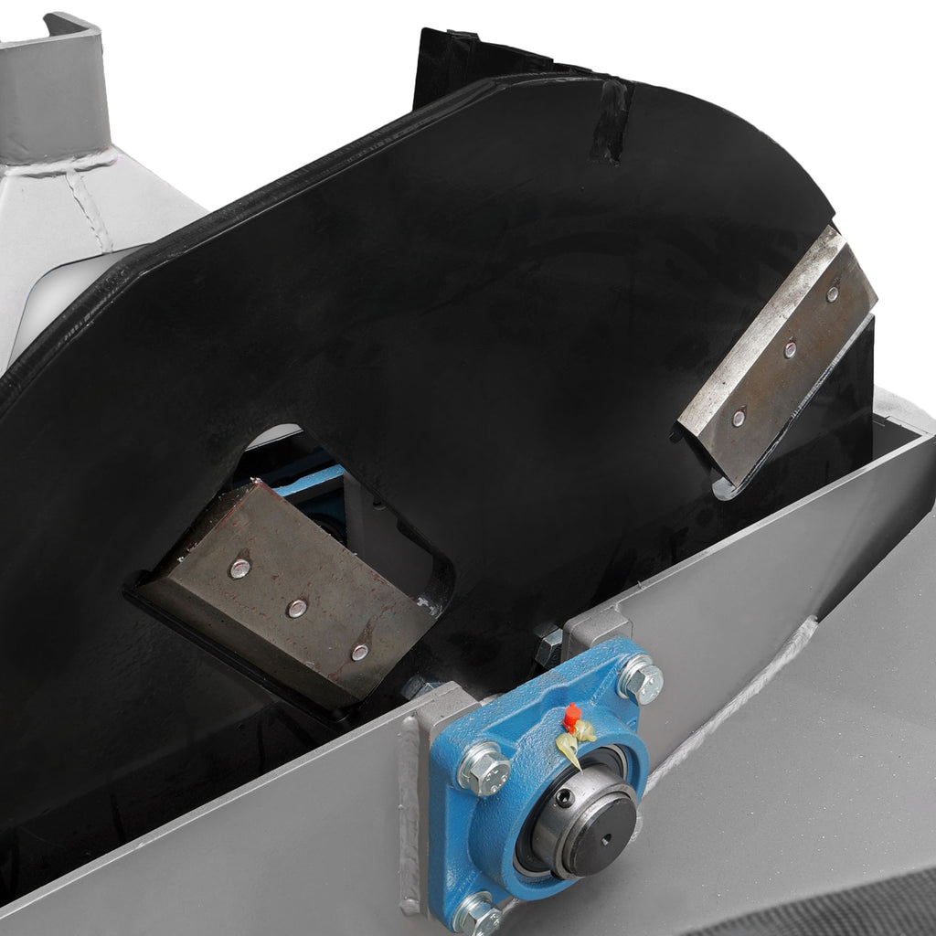 Koło zamachowe rębaka Jansen waży 95 kg i ma przymocowane skrzydełka, które generują bardzo silny uciąg. Rozdrobniony materiał jest wydmuchiwany przez lejek wyrzutowy. Możliwy jest wyrzut na odległość nawet 10 metrów!