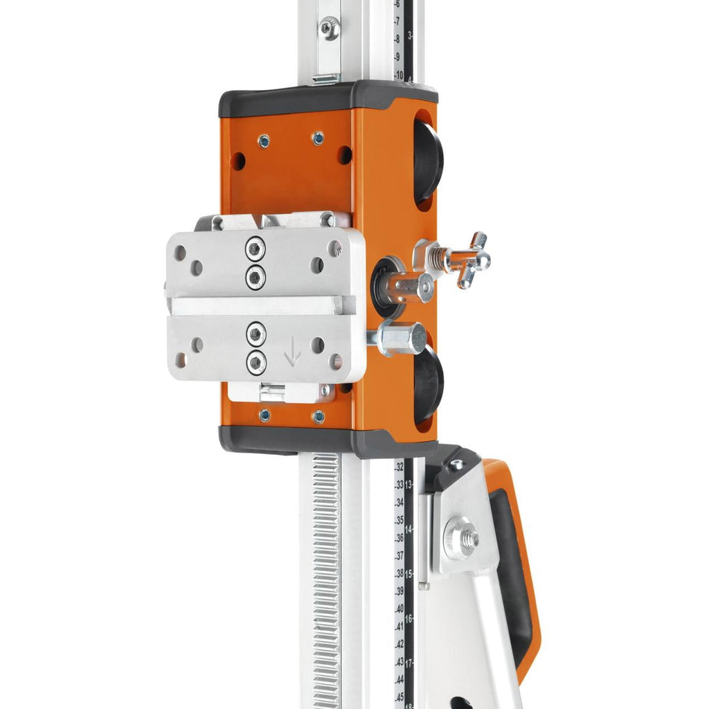 DS 250 Husqvarna to statyw do wiertnic średniej wielkości. Jest lekki, wykonany z aluminium oraz wyposażony w płytę bazową, która umożliwia mocowanie za pomocą kotew oraz za pośrednictwem funkcji przyssawnej. Statyw ułatwia wiercenie większych otworów w instalacjach wentylacyjnych i kanalizacyjnych, można również wiercieć pod kątem i "ściegiem". Zalecany do wierteł koronowych o średnicy do 250 mm.
