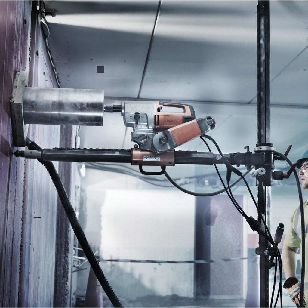 DS 50 Gyro Husqvarna to największy, teleskopowy statyw, pasujący do większości wiertnic. Jest prosty w obsłudze, łatwo się go montuje i demontuje - co pozwala zaoszczędzić czas i pieniądze. Statyw umożliwia wiercenie otworów w różnych pozycjach (wiercenie w pozycji odwróconej, pod kątem, poziomo) bez zmiany położenia statywu. Zalecany do wierteł koronowych o średnicy do 350 mm.