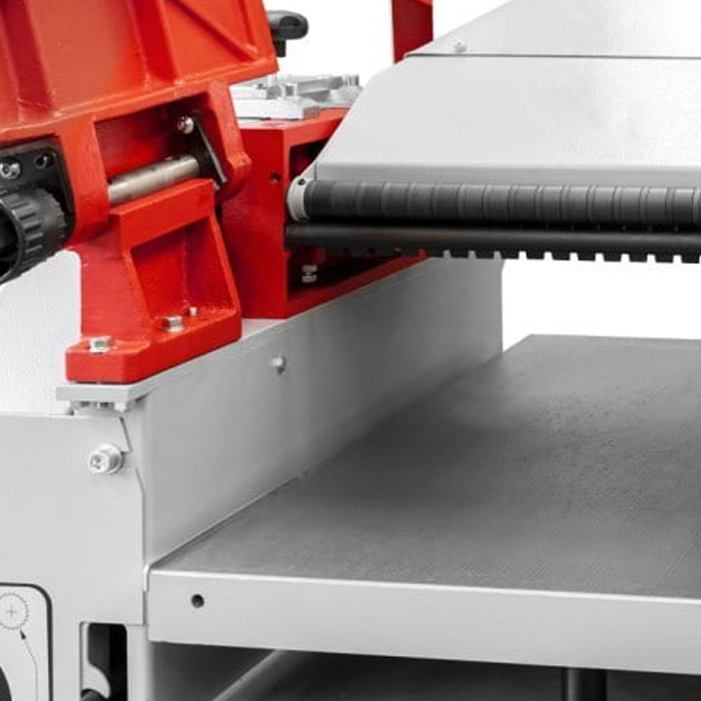Strugarko-grubościówka HOB 315 o napięciu 400V marki HOLZMANN to funkcjonalne urządzenie do obróbki drewna miękkiego oraz twardego. Wysoka jakość wykonania produktu gwarantuje wytrzymałość oraz najwyższe bezpieczeństwo użytkowania. Strugarko-grubościówka wyposażona została w składany żeliwny stół roboczy z centrycznym prowadzeniem oraz aluminiowy ogranicznik z możliwością przechyłu w zakresie 90 – 45 stopni. Silnik o mocy 4kW zapewnia bezproblemową obróbkę nawet twardego drewna, a wał 3-nożowy gwarantuje precyzję oraz dokładność. Króciec odciągowy o średnicy 120 mm pozwala na podłączenie odciągu, który zapewni miejsce pracy wolne od pyłu i wiórów.