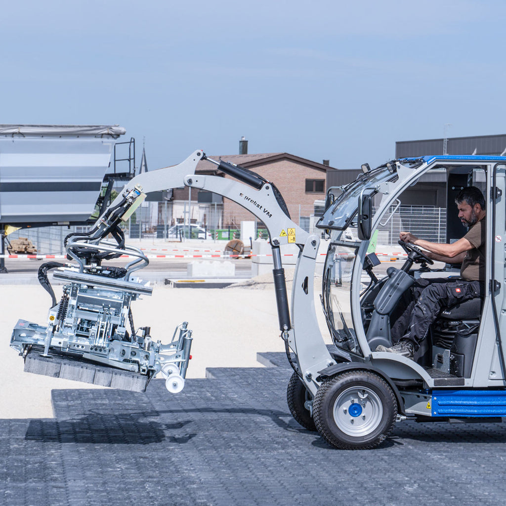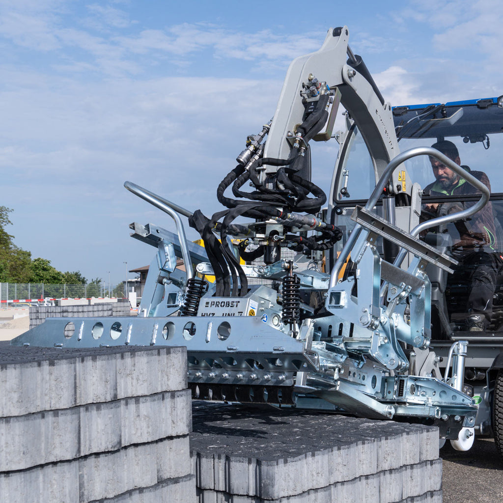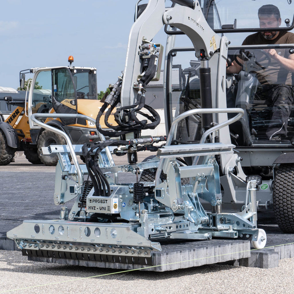 Układarka do kostki brukowej Probst VM-X-PAVERMAX premium do wydajniejszego układania wszystkich standardowych rodzajów kostki. Charakteryzuje się nową jakością wśród maszyn brukarskich. Dzięki niej wykonasz pracę wygodniej oraz wydajniej, niż kiedykolwiek wcześniej. Niezwykła płynność, a także podwójny przegubowy układ kierowniczy zapewnia maksymalną zwrotność. Odnajdzie się nawet w najtrudniej dostępnych i ciasnych miejscach. Zewnętrzne krawędzie maszyny są dostosowane do geometrii układu kierowniczego. Dzięki temu podczas manewrowania nie przeszkodzą Ci żadne wystające części pojazdu.