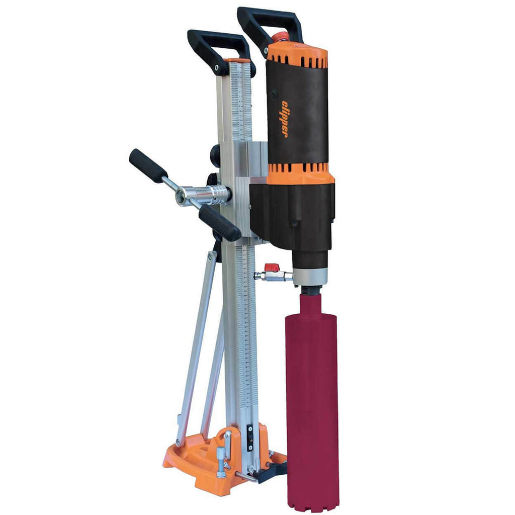 Zestaw do wiercenia betonu od marki Norton Clipper to sprzęt o dużej mocy, który poradzi sobie nawet z najtwardszym materiałem. Rolkowy układ prowadzenia wiertnicy sprawia, że operator nie musi wysilać się, aby sprawnie i płynnie operować wiertnicą. Ponadto trzystopniowa regulacja obrotów pozwala na dopasowanie prędkości do rodzaju obrabianego materiału.
