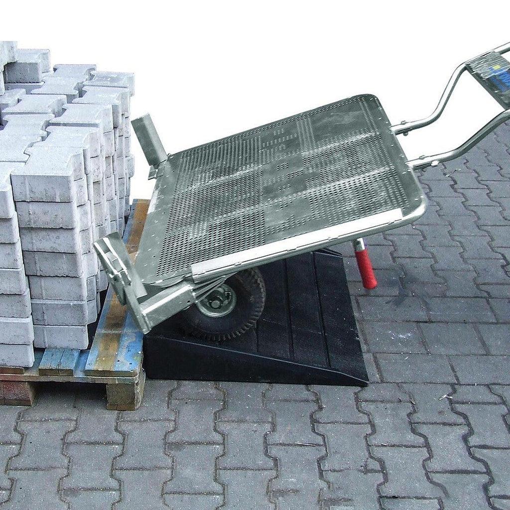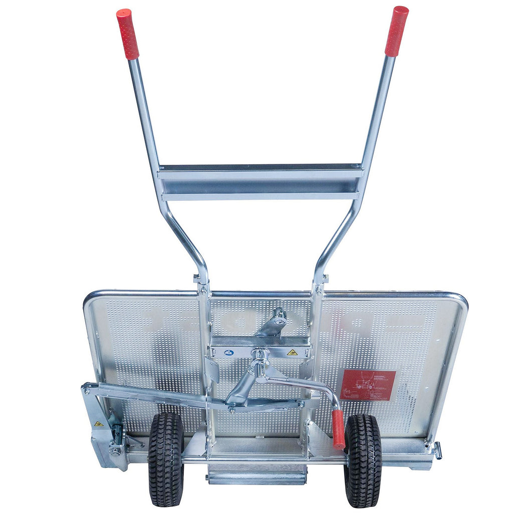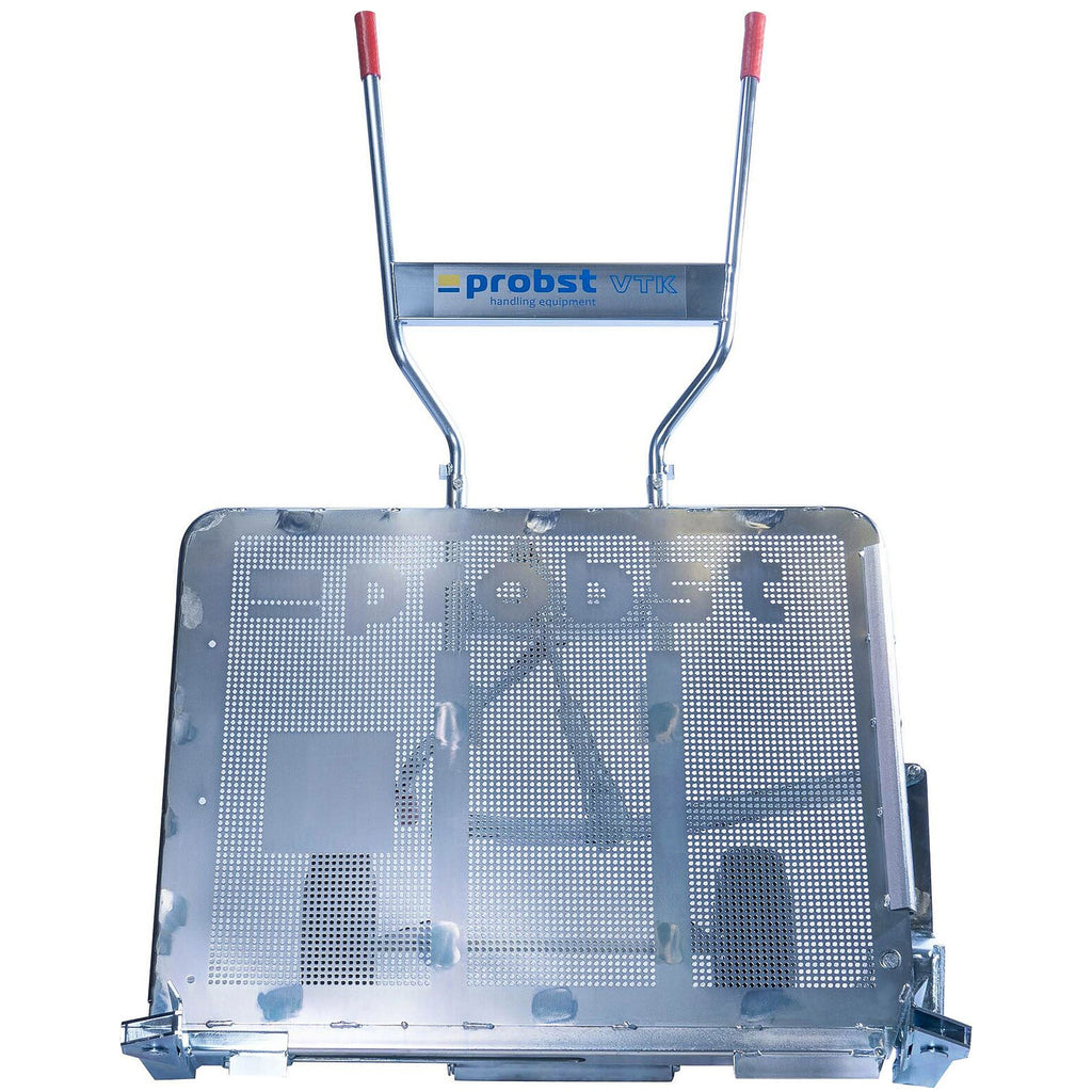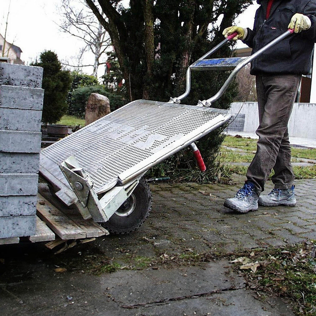 Wózek brukarski Probst VTK-V to w pełni mechaniczne, niezawodne urządzenie do bezwysiłkowego transportu różnego rodzaju płyt, kostek brukowych czy krawężników. Pozwala na przewiezienie luźnych elementów, jak i tych związanych. Ten regulowany wózek do kostki VTK-V to model wyposażony w specjalne chwyty, umożliwiające dopasowanie zacisku w zakresie 550-1050 mm. Chwytanie odbywa się za pomocą dźwigni 90°, gdzie maksymalny nacisk to 15 kg. Jednak limit obciążenia roboczego wynosi 400 kg.