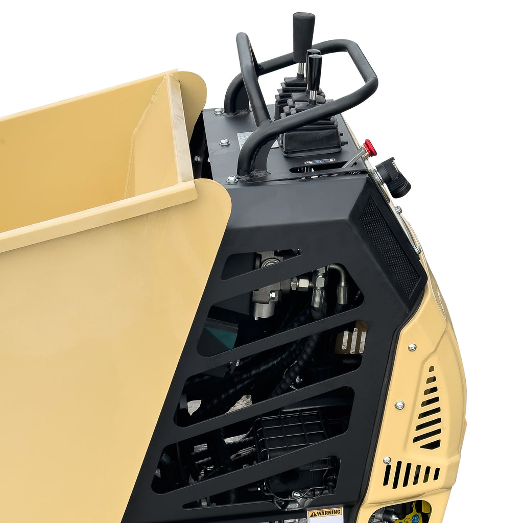 Model T500F-BS to potężna wywrotka gąsienicowa, hydrauliczną obsługą i precyzyjnym wznoszeniem skrzyni. Dzięki tej technologii możliwe jest szybkie i efektywne przemieszczanie ładunku, co znacząco skraca czas wykonywanych prac i zwiększa ogólną wydajność operacji.