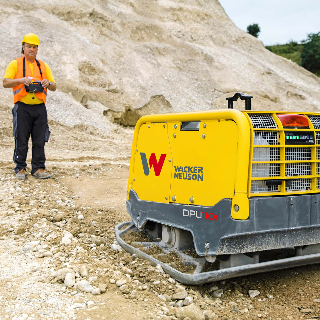 Zagęszczarka dwukierunkowa WACKER NEUSON DPU 110r stanowi innowacyjne urządzenie wśród ciężkich maszyn do utwardzania gruntu. Seria DPU 110r jest sterowana zdalnie za pomocą podczerwieni, dzięki czemu operator może stać w bezpiecznej pozycji, sterując wygodnie za pomocą pilota ruchy urządzenia.