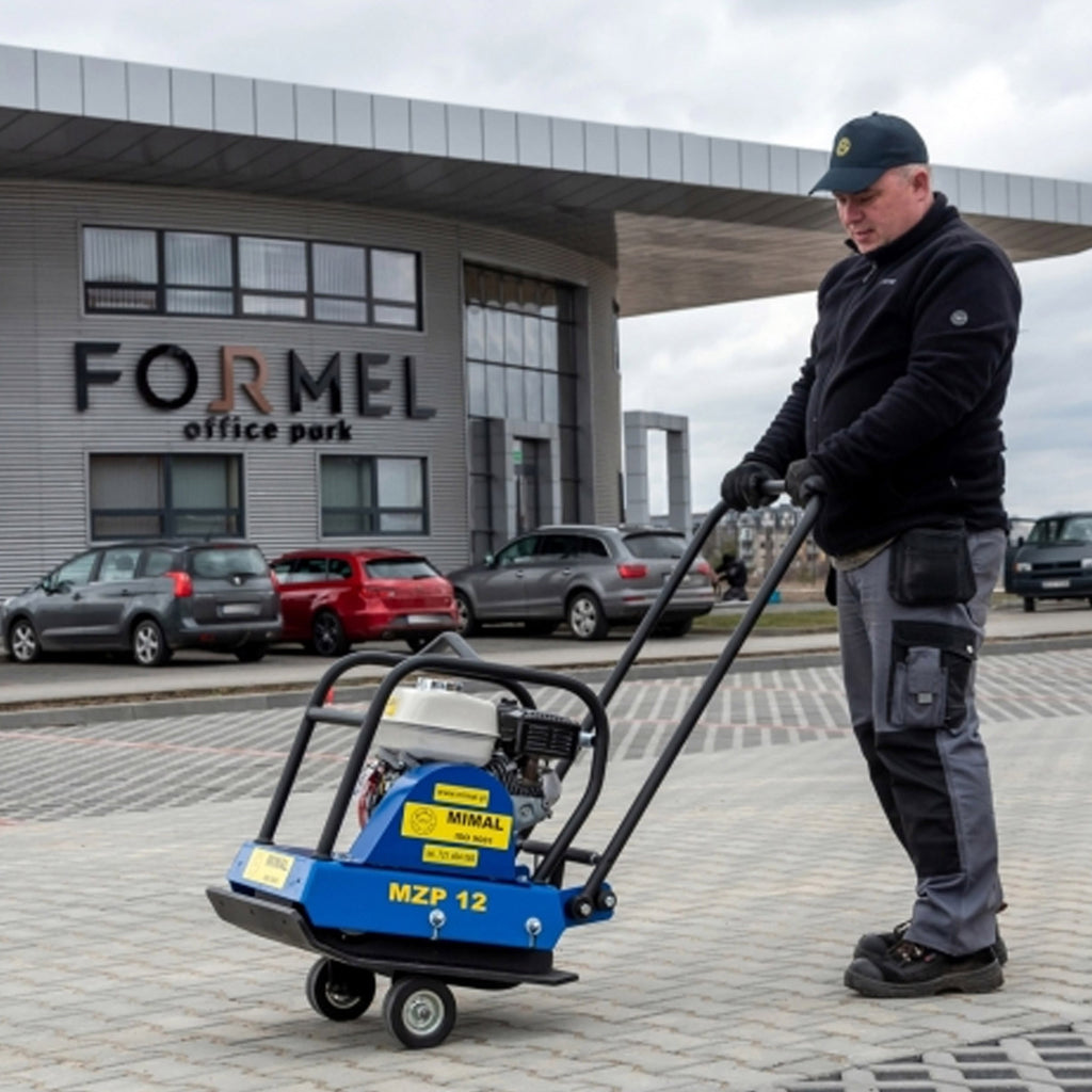 Zagęszczarka Mimal MZP12 to jednokierunkowe urządzenie, które zostało stworzone z myślą o zagęszczaniu powierzchni na małych i średnich budowach. Odznacza się uniwersalnością i swoje zastosowanie znajdzie przy różnego rodzaju pracach. Idealnie sprawdzi się na małych i średnich budowach, zarówno na wzniesieniach, jak i na terenach poziomych. MZP 12 to większa odsłona zagęszczarki MZP 10 firmy Mimal. Charakteryzuje się większą szerokością płyty i wydajnością- dysponuje siłą wymuszającą 15 kN.