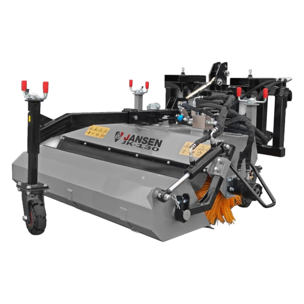 Hydraulicznie napędzana zamiatarka ciągnikowa idealna do czyszczenia mocno zabrudzonych obszarów i dróg. Świetnie sprawdza się w stajniach, podwórkach oraz na nawierzchniach dróg i innych podobnych powierzchniach. Jansen JK-130 zapewnia imponujące działanie - szybko i dokładnie czyści beton, asfalt oraz powierzchnie brukowane. Nadaje się do zamiatania brudu oraz lekkiego śniegu.